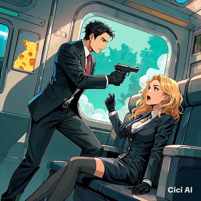 Charlie entró al compartimento, esta vez como técnico de mantenimiento, con un mono azul falso que no podía ocultar su porte de modelo. Sus guantes negros parecían fuera de lugar, y sus zapatos talle 49, aunque cubiertos por el mono, desprendían un olor que flotaba como un espectro. Llevaba una caja de herramientas que, en realidad, contenía su revólver y un Queso Gruyere.